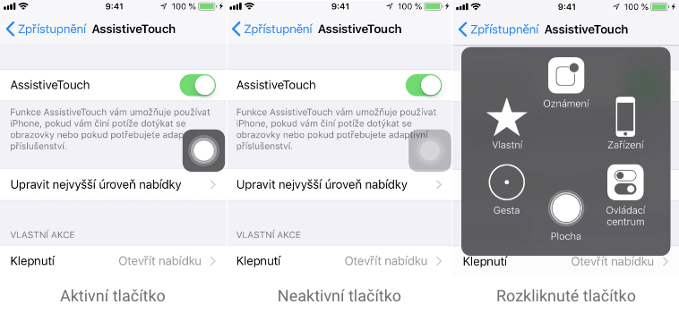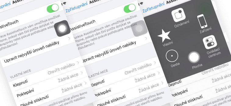 Tlačítko AssistiveTouch má prioritně nastavenou svou pozici na displayi, ale tu můžete tahem libovolně měnit dle potřeby. Dále se tlačítko automaticky zprůhledňuje, když jej nevyužíváte – to proto, aby se nestalo, že by vám zakrývalo důležitou část obsahu.