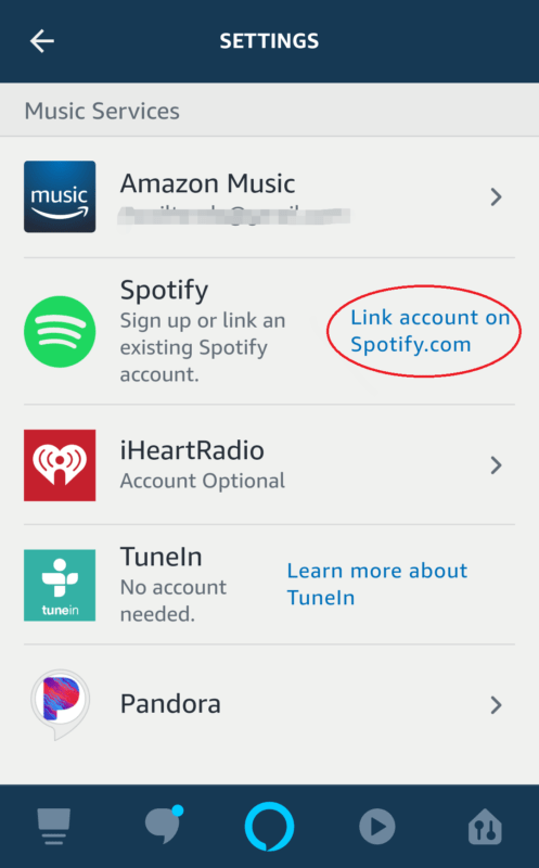 Zobrazí se vám nabídka několika různých hudebních aplikací, které lze s Alexou využívat. Jednou z nich bude i Spotify, u něj je pak potřeba kliknout na Link account.