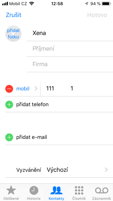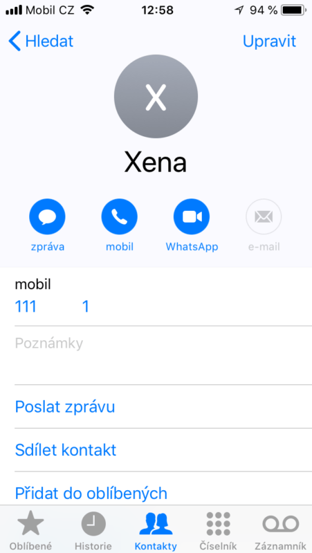 Rozklikneme si jeden z našich kontaktů – v našem případě fiktivní Xenu.