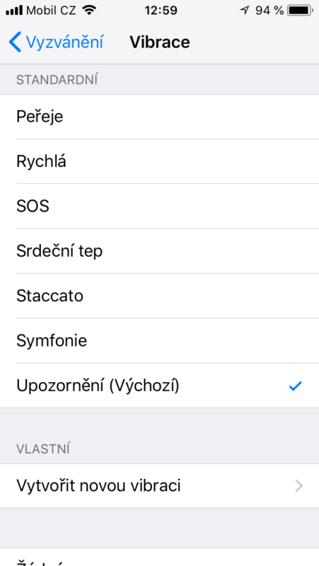 A buďto si vybereme s již vytvořených vibrací nebo si vytvoříme svoji vlastní (tuto možnost doporučujeme). V případě, že chcete dát na naše doporučení, klikněte na Vytvořit novou vibraci.