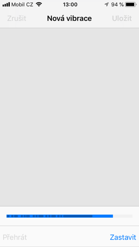 Teď nastává okamžik, kdy můžete kreativitě pustit uzdu. Lehkým kliknutím vznikne slabší vibrace a dlouhým stiskem pro změnu silnější. Vytvořte si tedy svou vlastní vibraci dle toho, jak uznáte za vhodné. Vytvořenou vibraci si poté můžete ještě přehrát, abyste zjistili, zda jste s výsledkem spokojeni a pokud spokojení budete, tak už nezbývá nic jiného než vibraci pojmenovat.